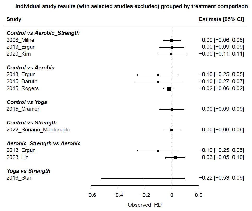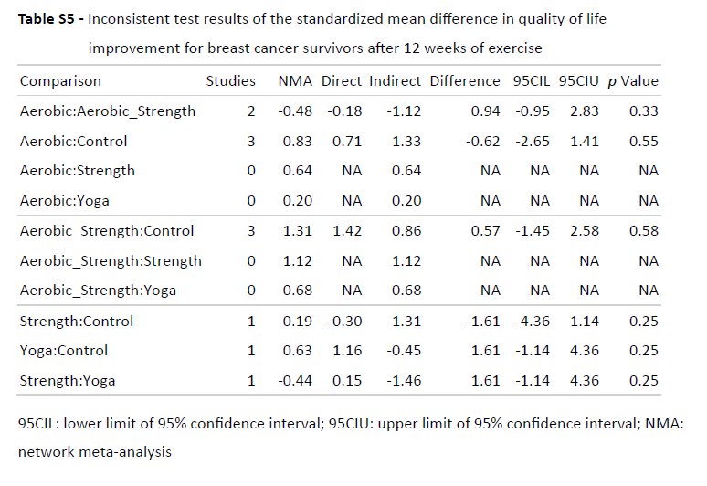 這張是在 MetaInsight 某次改款的時候,上面的標題就變成錯誤的文字,因為在這裡,我們並沒有排除任何的研究,但是最上方的標題,括號內部卻提到,我們排除了部分研究,這與事實不符。所以建議做簡單的裁切,讓他沒有標題即可。在下方比較的類別名稱中,也建議把排序的數字編號去掉。